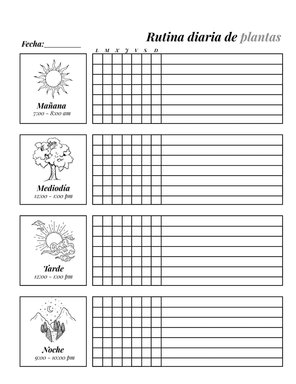 Perfecto para principiantes – Diseño claro y práctico que puedes imprimir.Rutina diaria de plantas